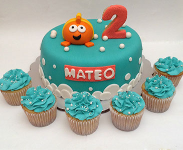 Cupcake de vainilla relleno de nutella, cubierto con creamcheese de plátano.