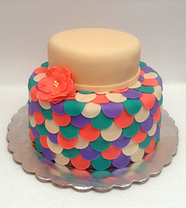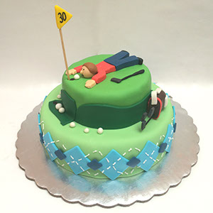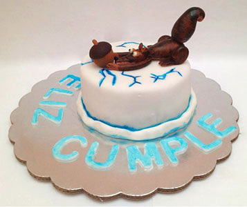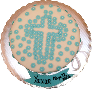 Cubierto por un frosting de creamcheese de menta decorado con líneas de chocolate.