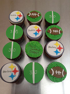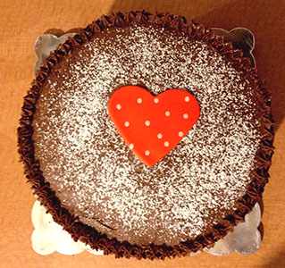 Cupcake de vainilla, relleno de crema pastelera, cubierto con ganache de chocolate semiamargo.